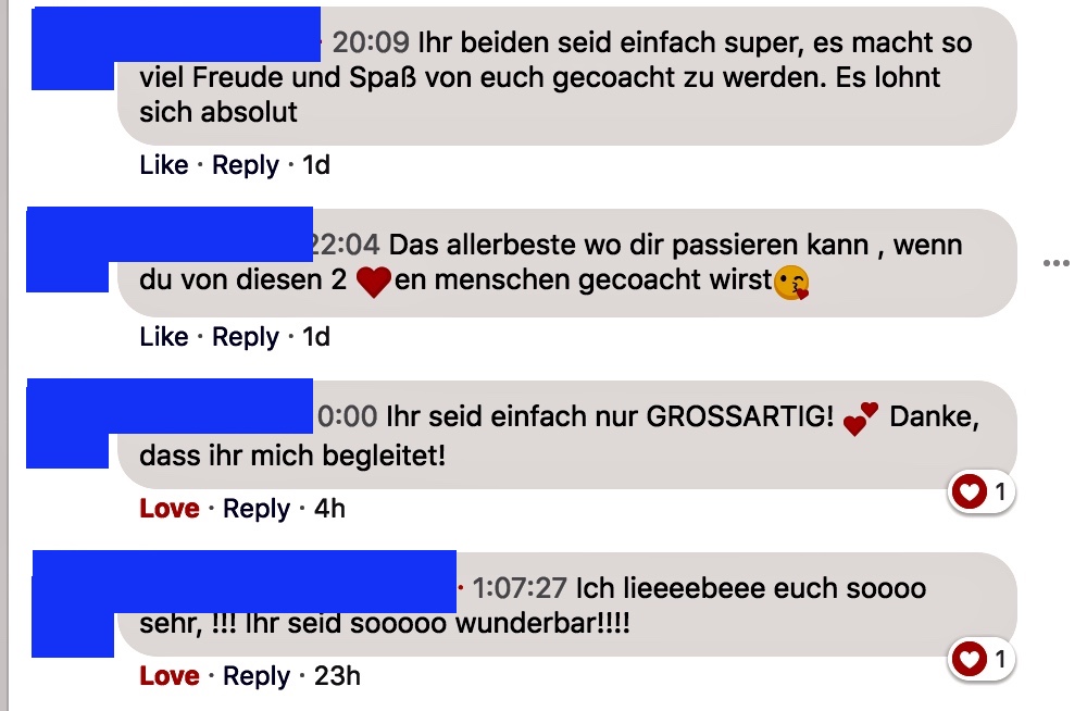 Wir sind Online Marketing Coaches und nach 10 Jahre Konzern Hamsterrad, haben wir uns entschieden unser DING zu machen und in nur ein paar Wochen haben wir es geschafft kontinuierlich, mit unserem Online Coaching Business, jeden Monat 5 Stellig zu verdienen und dabei endlich mehr Zeit für uns und für unsere Kinder zu haben.